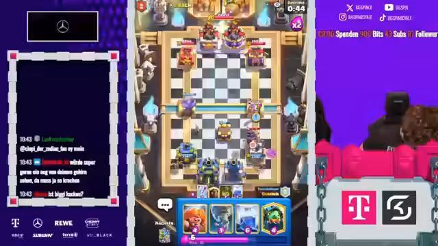 12:09:30Trotz guter Bemühungen verlieren die Streamer zunehmend an Boden in der Rangliste. Sie spielen gegen Gegner, die als überlegen wahrgenommen werden, und erleben mehrere frustrierende Niederlagen. Eine besonders bittere Niederlage ereignet sich, als sie gegen ein Rocket-Deck verlieren, obwohl sie eine vorteilhafte Position hatten. Die Streamer zeigen ihre Enttäuschung und analysieren die Spiele, um Fehler zu finden. Sie erkennen, dass ihre Karten nicht immer optimal gegen die Meta-Decks wie Rocket oder Goblin Machine abschneiden und überlegen, ihre Strategie anzupassen, um die verlorenen Trophäen zurückzugewinnen.