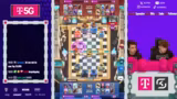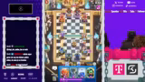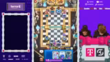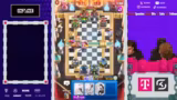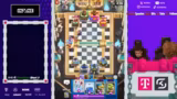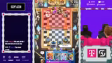 00:15:34Das Spiel beginnt mit einem deutlichen Skill-Unterschied, da die Gegner eine viel höhere Platzierung aufweisen. Die Streamer haben trotz guter Starts und einiger cleverer Züge wie der Nutzung von Curse und Poison, insbesondere gegen E-Giants, massive Probleme mit dem gegnerischen Druck und dem Timing ihrer Züge. Oftmals werden durch unnötige Fehler, wie das Pushen in Fallen oder unkoordinierte Aktionen, Spiele verloren, die als gewonnen gegolten hätten.