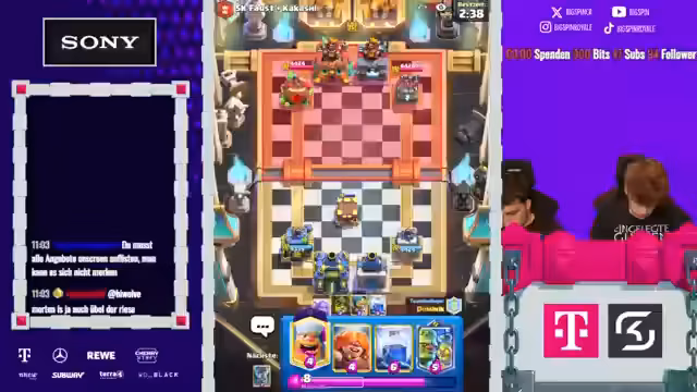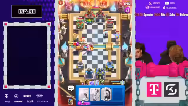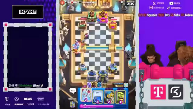 01:36:14Die Spannung bleibt hoch, aber sie versuchen es erneut. Es kommt erneut zu Absprachefehlern, als einer einen Lava-Hund an der Brücke setzt, obwohl dies zuvor als strategisch ungünstig eingestuft wurde. Sie diskutieren über verschiedene Decks wie 'E-Giant' und die Schwierigkeiten, diese zu kontern. Die Kommunikation ist weiterhin problematisch, und die Spieler fühlen sich im Unklaren über die gegnerischen Spielzüge, was zu weiteren Fehlern und verlorenen Spielen führt.