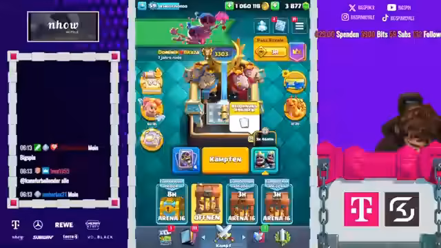 00:06:01Nachdem die technischen Hürden genommen sind, bereiten sich die Streamer auf ihre 2VS2-Partie vor. Sie planen, mit den gleichen Decks aus der vorherigen Season zu spielen, bestehend aus Karten wie Lava-Hund, Elektro-Drache, Rage und Runenriesen. Es wird eine stabile Taktik mit Fokus auf Chip-Schaden und zyklischem Einsatz der Truppen und Zauber beschrieben. Der Streamer erwähnt, dass Dominik später dazukommen wird, und sie hören möglicherweise gemeinsam durch.
