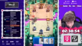 00:06:08Der Stream beginnt mit einem Brücken-Spam-Deck und das erste Spiel wird souverän gewonnen. Es folgen Siege gegen ein "gottloses Random Deck" und ein Nado, Evo-Valkyrie, Henker, Loon, Freeze Deck. Der Streamer kommentiert die Spiele und lobt das Deck des ersten Gegners. Nach drei gewonnen Spielen steht es 3:0. Er stellt fest, dass das aktuelle Deck gut funktioniert und weitergespielt wird.