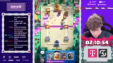 01:45:05Ein besonders dramatisches Game wird gespielt, bei dem der Gegner mit einem ungewöhnlichen Deck aus Magic Archer und Goblin Machine aufwartet. Der Streamer verliert durch eine Fehlentscheidung und kritisiert dabei das Spiel selbst, da er der Meinung ist, Supercell habe den Sieg des Gegners vorgegeben. Er gewinnt das darauffolgende Game jedoch sicher und nutzt dabei gegnerische Fehler für einen klaren Sieg, was seine Gesamtbilanz auf positive Werte bringt.