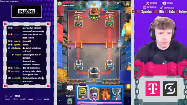 00:03:46Während der laufenden Spiele wird der Plan für den heutigen Stream konkretisiert. Nach dem Abschluss der aktuellen GT-Session wird um 21 Uhr ein offizielles GT-Duell stattfinden. An diesem Duell werden neben dem Streamer auch Dominik und Zodiac teilnehmen, was den Höhepunkt des Streams darstellt. Zusätzlich wird die Ankündigung eines großen Events am 12. März gemacht: ein 12-stündiger OG-Clash-Royale-Stream, der die gesamte OG-Season abdecken wird.