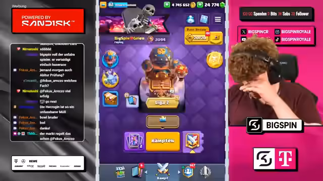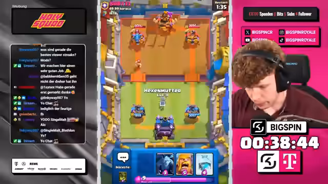 00:31:12Es werden weitere Spiele gespielt, bei denen der Streamer mit Decks wie Graveyard, Electro Spirit und Banditen konfrontiert ist. Der Streamer zeigt sich unzufried mit manchen Karten-Combos, besonders in Bezug auf den mangelnden Schaden gegen Royal Giant. Einige Spiele gehen verloren, aber der Streamer bleibt optimistisch und motiviert für die nächste Runde.
