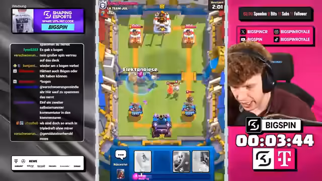 03:16:20Nach dem Sieg gegen das Tober Deck äußert der Streamer heftige Kritik an diesem Deck, das er als fragwürdig bezeichnet. Er bringt in Verbindung, dass der gesamte Clan angeblich dieses schwache Deck spielt und dies in der Corona-Entwicklungsphase entstanden sein könnte. Der Streamer drückt sein Unverständnis über den Erfolg dieses Decks aus und betont, dass der Gegner grundlegende Spielprinzipien missachtet hat, was zu seinem schnellen Scheitern führte.
