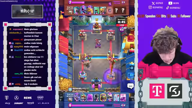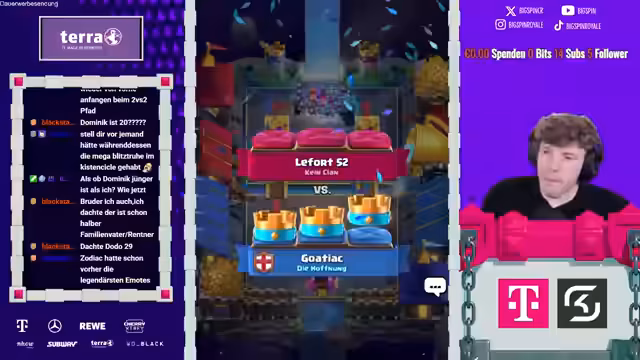 03:42:05Es wird über verschiedene Decks und Spielstrategien diskutiert, einschließlich der Verwendung von Evo, Lama, Jack, Mirror und Rage im 2v2-Modus. Der Streamer äußert seine Hoffnung auf günstige Spielausgänge und spricht über vergangene Niederlagen gegen bestimmte Gegner. Er erwähnt auch die Möglichkeit zukünftiger Streams und Kooperationen, abhängig von der Behebung technischer Probleme. Des Weiteren wird über die Effektivität bestimmter Karten und Decks diskutiert, wie E-Golem, und die Notwendigkeit, sich an die sich ändernden Spielmechaniken anzupassen. Der Streamer reflektiert über seine eigenen Leistungen und die Herausforderungen, mit denen er konfrontiert ist, wie das Schwitzen um sein Leben ohne Grund. Er spricht auch über die Bedeutung von Teamarbeit und Strategie im 2v2-Modus und die Notwendigkeit, sich auf die Stärken des Partners zu verlassen. Abschließend wird die Möglichkeit von E-Sport-Teilnahmen und die Bedeutung von kontinuierlicher Verbesserung und Anpassung an die Meta-Entwicklung im Spiel betont. Es werden auch Community-Interaktionen und die Bedeutung von Zuschauer-Feedback hervorgehoben.