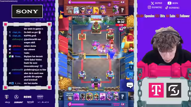 02:32:48Der Streamer bedankt sich bei seinen Zuschauern für die Unterstützung und erwähnt, dass ihm noch 89 Follower bis zu 25.000 Followern fehlen. Er ermutigt die Zuschauer, den Kanal zu abonnieren. Es wird über ein Match-Up gesprochen, das der Streamer zuvor verloren hat. Es folgt eine Diskussion über verschiedene Deck-Zusammenstellungen und deren Stärken und Schwächen. Der Streamer gibt Ratschläge und analysiert die Spielzüge seines Gegners. Er lobt die Fähigkeiten seines Gegners und dessen strategisches Vorgehen. Der Streamer erwähnt ein Erklärungsvideo auf YouTube, in dem er seine Strategien erläutert. Er spricht über die Bedeutung von Timing und Präzision beim Einsatz von Karten. Der Streamer kündigt an, dass Dominik ihm hilft. Es wird über die Clash Royale Liga gesprochen und spekuliert, ob bestimmte Spieler teilnehmen werden. Der Streamer drückt seine Frustration über bestimmte Match-Ups aus und beschreibt sie als schwierig und unfair. Er lobt jedoch auch die Fähigkeiten seiner Gegner und deren kreative Spielweise.