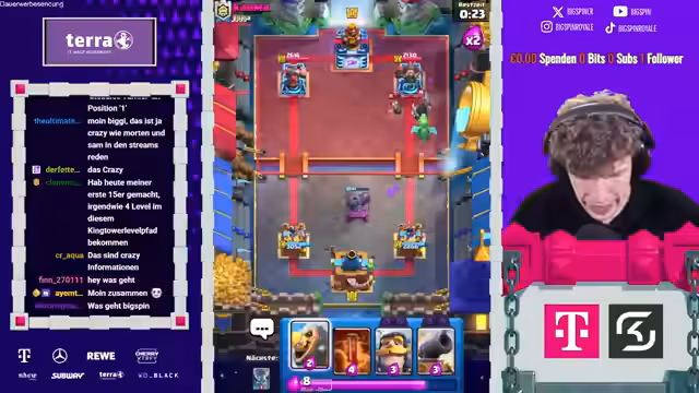 02:08:36Der Sprecher äußert den Wunsch nach Ankündigungen bezüglich Clash Royale eSports, insbesondere im Hinblick auf die Champions League (CL). Es wird die Lust am Kommentieren und Spielen betont. Der Wunsch nach einem Lebenszeichen von eSports-Veranstaltungen wird laut. Der Sprecher kündigt an, sein Deck von Golem, Healer, Evo, E-Dragon auf E-Golem mit Pekka E-Dragon umzustellen, was als potenziell überraschende Strategie dargestellt wird. Anschließend verlässt der Sprecher kurz den Stream, um pinkeln zu gehen, und bittet den Chat, sich während seiner Abwesenheit zu benehmen. Nach seiner Rückkehr scherzt er mit dem Chat und bezeichnet sie spielerisch als 'Stinker'. Es wird über das eigene Spielverhalten gescherzt und die Freude über einen Comeback-Sieg ausgedrückt. Der Sprecher erwähnt, dass Twitch Prime kostenfrei ist und empfiehlt den Zuschauern, den Content zu genießen.