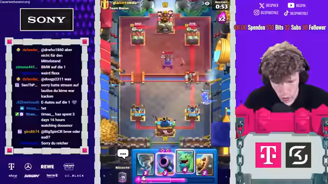 02:57:18Einige Gegner scheinen gegen X-Bogen eine Anti-Deck-Strategie mit Rocket zu fahren. Der Streamer versucht, defensiv zu spielen, merkt aber an, dass es schwer ist, gegen das ständige Cycling von Feuerball zu verteidigen. Es kommt zu Diskussionen über die Stärke von MK-Lightning-Decks, die er als problematisch empfindet. Gegen diese Decks muss er spezielle Karten wie Evo Snowball oder Ivo-Bets einsetzen, was das Spiel für ihn riskanter und anstrengender macht.
