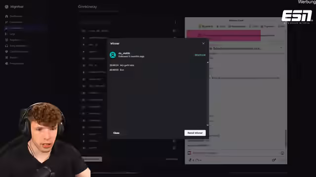 01:12:40Der Streamer kündigt das Giveaway von zwei Kurzhantel-Sets an, die jeweils zwei Hanteln mit einem Gewichtsbereich von 2 bis 24 Kilogramm umfassen. Er erklärt, dass diese verstellbaren Hanteln eine hervorragende Möglichkeit sind, zu Hause Sport zu treiben und einen guten Reiz für den Muskelaufbau zu setzen, besonders für diejenigen, die noch nicht ins Fitnessstudio gehen möchten. Die Teilnahmebedingungen für das Giveaway, einschließlich des Mindestalters von 18 Jahren und des Wohnsitzes in Deutschland, werden erneut im Chat angepinnt. Das Keyword für die Teilnahme ist 'ESN'. Der Streamer wird die Gewinner kontaktieren, um die weiteren Schritte zu besprechen. Der erste Gewinner wird ausgelost: Daniel00. Er wird gebeten, seine Twitch-DMs zu überprüfen und sich innerhalb einer Viertelstunde zu melden, da sonst neu ausgelost wird. Anschließend wird der zweite Gewinner gezogen: Skates unter Strich X, der ebenfalls aufgefordert wird, sich zu melden und seine DMs zu überprüfen. Es wird betont, dass in den nächsten Tagen weitere drei Kurzhantel-Sets verlost werden, was die Zuschauer ermutigt, weiterhin einzuschalten.