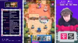 01:10:31Das Spiel gewinnt man trotz anfänglicher Schwierigkeiten, wobei der elektronische Kniff und der Bowler eine entscheidende Rolle spielen. Nach dem Sieg wird die Notwendigkeit erkannt, den Champion im Deck auszutauschen, idealerweise gegen eine Musketierin oder einen Elektro-Magier anstelle des Prinzen, um die Luftabwehr zu verbessern. Trotzdem bleibt das Deck auch mit den aktuellen Anpassungen konkurrenzfähig. Im nächsten Zug wird die Boss-Banditin an der Brücke eingesetzt, der Gegner kontert mit einem Phönix und einem E-Golem-Deck. Die Queen wäre in dieser Situation vorteilhafter, aber es gibt keine andere Option. Der respawnende Felix erfordert den sofortigen Einsatz der Boss-Party, was den Gegner in eine potenziell verlorene Situation bringt, da keine geeignete Verteidigung vorhanden ist.