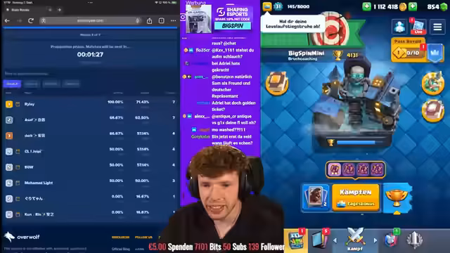 07:49:33Die Überraschung und Begeisterung über den Sieg eines Bekannten in einem Bodybuilding-Wettkampf sind groß. Es wird über dessen beeindruckende Physis, insbesondere die Beine, und den schnellen Aufstieg in der Profiszene diskutiert. Der Streamer äußert Bewunderung und Ungläubigkeit über den Erfolg. Parallel dazu wird die Schwierigkeit der aktuellen Clash Royale-Matches thematisiert, wobei die Gegner plötzlich stärker erscheinen und ausgefeilte Decks spielen. Es wird spekuliert, ob es eine Veränderung im Spielverhalten oder in der Zusammensetzung der Gegnerschaft gibt. Trotz der gestiegenen Herausforderungen bleibt der Streamer fokussiert und versucht, die Spiele zu gewinnen und die benötigten Kronen für das Opening zu sammeln.
