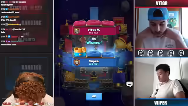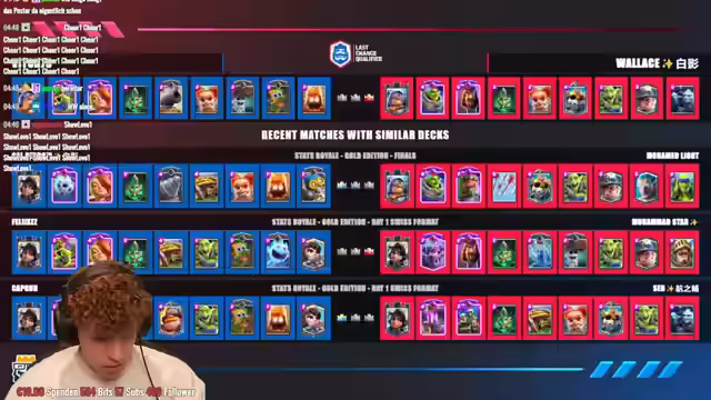04:17:17Es wird ein Clash Royale-Match analysiert, in dem ein Spieler viel Schaden verursacht und kurz vor dem Sieg steht. Ein Disconnect des Gegners verschafft einen Vorteil, aber es bleibt spannend. Der Spieler mit Momentum gewinnt knapp. Es wird hervorgehoben, dass dies die letzte Chance zur Qualifikation für ein Turnier mit einer Million Euro Preisgeld ist. Ein Spieler kommt aus dem Lower Bracket und überrascht. Ein Drill wird als guter Zug gelobt. Es wird überlegt, ob es das erste Spiel der Clash Royale WM war. Ein Spieler ist frustriert und steht mit dem Rücken zur Wand, während der Gegner einen perfekten Start hinlegt. Es wird spekuliert, ob der Gegner einen 3-0-Sieg erzielen wird. Der frustrierte Spieler ist normalerweise ruhig, aber diesmal sichtlich verärgert. Der Chat äußert den Wunsch, selbst zu spielen, aber befürchtet, Trophäen zu verlieren.