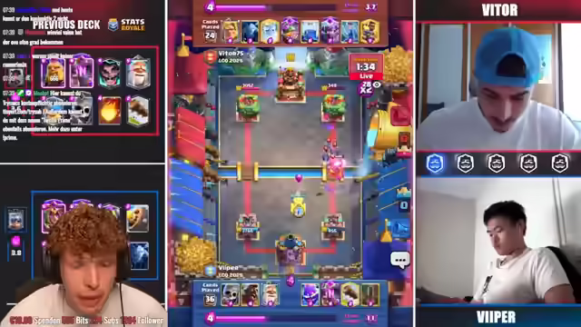 03:54:47Vitor spielt Drill mit Dark Prince. Viper hat Probleme mit Bats. Das Matchup ist gut für Vitor, da Viper keine Queen down bekommt und nichts gegen Bats hat. Es wurde diskutiert, dass das mit dem Kinderspiel immer über Spitz-Chat ist und das Stilmittel des Kontrastes ist. Feuerwehr kommt rein. Vitor hat wahrscheinlich Rakete als letzte Karte. Es wurde überlegt, ob sich die Zündung gegen den Daten für die Kanone lohnt. Es wurde überlegt, dass ein Royal Giant und ein Skelly King gut wären. Miner kommt rein. Es gab Diskussionen über das Google-Devter Sparkle und den Magier. Viper hat mit der Extrem-Fan angefangen, konnte es aber nicht über die Zeit tragen. Es steht 2-2. Es werden völlig neue Decks zu sehen sein. Es wurde diskutiert, wem man es mehr gönnen würde. Es wurde analysiert, dass Viper jetzt auch keinen Bock hat, das Game zu verlieren, dann gibt es nochmal ein Best of Five. Viper hat den Grünen ausgepackt.