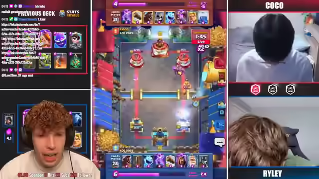 00:30:39Das Match zwischen Clown und Kitashian beginnt mit einer Analyse der Decks. Kitashian zeigt Frustration über seine Deckwahl. Es wird auf frühere Erfolge und Misserfolge mit ähnlichen Decks hingewiesen. Kitashian verliert das erste Spiel, was seine Frustration verstärkt. Es wird auf die ungewöhnlichen Stats des Decks hingewiesen. Im zweiten Spiel wählt Kitashian ein anderes Deck, was jedoch nicht zum Erfolg führt. Die Wahl des Goblin Giant Decks wird kritisiert und als "No-Skill" bezeichnet. Die Frustration über die scheinbar unfaire Spielweise wird deutlich. Es wird spekuliert, ob die Spieler in den nächsten Spielen zu "normalen" Decks zurückkehren werden. Das dritte und entscheidende Match beginnt mit anspruchsvollen Decks auf beiden Seiten.