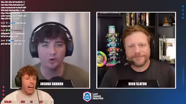 00:00:51Der Stream beginnt mit Ankündigungen und Vorbereitungen für das bevorstehende 1.000.000$ CRL Last Chance Qualifier Turnier. Es wird ein Dreier-Cast mit Max und Dominik geben. Technische Feinabstimmungen am Mikrofon werden vorgenommen und eine Instankündigung auf Social Media vorbereitet. Riley wird ebenfalls am Turnier teilnehmen. Es gibt Belohnungen für die Zuschauer. Dominik hat technische Schwierigkeiten beim Beitritt zum Discord-Server, was zusätzliche Koordination erfordert. Der Fokus liegt auf dem bevorstehenden Turnier, bei dem es um die Qualifikation für die World Finals geht. Es wird auf das Bracket hingewiesen, in dem interessante Matches zu sehen sein werden. Ein kurzer Ausblick auf das erste Match Riley gegen Coco wird gegeben.
