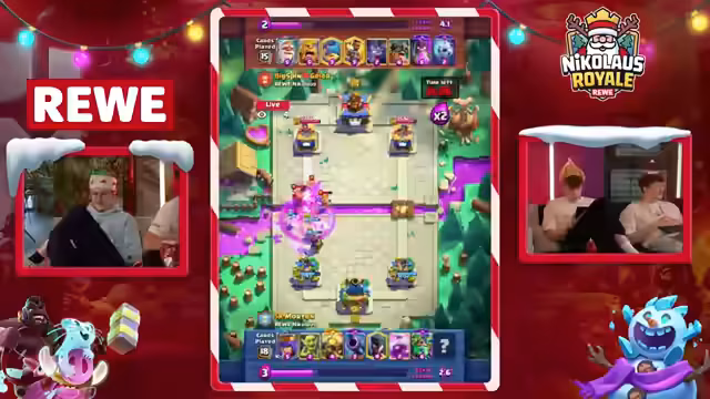 00:10:00Der Stream beginnt mit der Begrüßung zum Nikolaus Royale, einem Clash-Royale-Special-Stream. Es wird ein Turnier im Double-Elimination-Bracket mit Best-of-Spielen angekündigt, bei denen nach jedem Match ein komplett neues Deck gezogen wird. Für die Zuschauer wird ebenfalls ein Draft-Format mit sechs von acht Karten vorgestellt. Die Streamer unterhalten sich über den zufälligen Charakter des Drafts und wie die Wahl der letzten beiden Karten das Deck maßgeblich beeinflussen kann.
