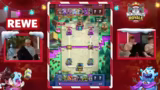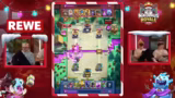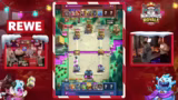 01:07:13Nach den regulären Matches wird ein Sondermatch inszeniert, bei dem ein zufällig ausgewählter Zuschauer namens Hubi gegen einen Streamer antritt. Hubi erhält ein zufällig gezogenes Deck, das aus Karten wie Barbarenfass, Mega-Miner und Magic Archer besteht, um eine faire Herausforderung zu schaffen. Der Einsatz für Hubi ist attraktiv: ein 150 Euro Rewe-Gutschein. Kommentatoren und Streamer äußern Respekt für Hubis Spielweise und preisen sein Deck als bestes des Tages, was die Spannung und den Unterhaltungswert dieses unvorhersehbaren Duells erhöht.