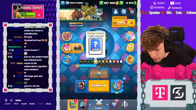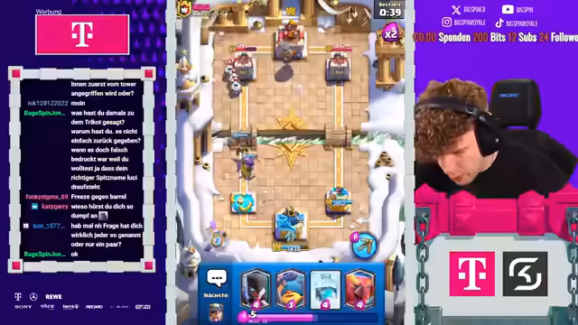 00:13:28Während des Spiels erwähnt der Streamer den wöchentlichen Podcast mit Jonas, der heute seine 10. Folge veröffentlicht hat. Aufgrund der Weihnachtszeit wird eine Pause eingelegt. Er ermutigt Zuschauer, die Folgen zwischen den Jahren nachzuholen. Gleichzeitig kommentiert er die aktuelle Spielsituation: Er kämpft gegen ein Deck mit Inferno-Turm und Elektro-Drachen, was seine Lavahund-Strategie erschwert. Trotzdem gelingt ihm ein Sieg durch geschickten Einsatz von Raketen gegen gegnerische Luftangriffe.