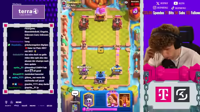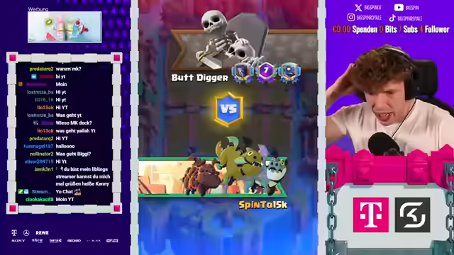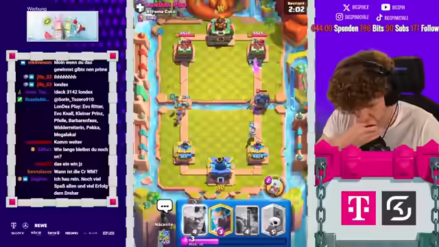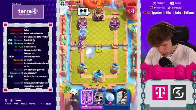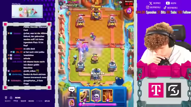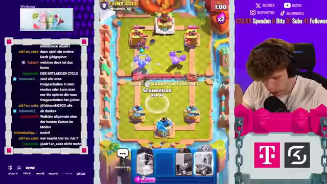 00:00:53Der Streamer startet eine Challenge mit einem 1.0 Megaritter-Cycle Deck. Er äußert seine Zweifel, ob das Deck funktionieren wird, da er befürchtet, dass das gegnerische Deck stark kontern könnte. Im ersten Spiel gegen Hans FTV versucht er, den Gegner mit dem Megaritter-Cycle auseinanderzunehmen, hat aber Respekt vor der Aufgabe. Er analysiert die gegnerischen Karten wie Kyra und Wallbreaker und überlegt, wie er sie mit seinen Skeletten und dem Schneeball kontern kann. Er stellt fest, dass der Gegner mit der Walküre eine perfekte Antwort auf seine Züge hat, was es schwierig macht, mit dem MK-Cycle etwas zu reißen. Trotzdem gibt er nicht auf und versucht, das Spiel irgendwie zu gewinnen. Nach einer Niederlage im ersten Spiel, bei dem der Gegner ein normales Deck spielte und perfekte Antworten hatte, startet der Streamer direkt das nächste Spiel. Er überlegt, ob er andere Support-Karten mitnehmen sollte, will aber eigentlich das günstigste Deck spielen, um den MK häufiger zu cyclen.