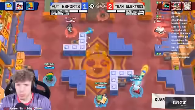 02:34:33Elektros liefert starke Leistungen gegen die etablierten Weltmeister von Foot eSports ab und führt mit 1:0. Besonders beeindruckend ist, dass einer ihrer Spieler, Enraged oder Refresh, erst 16 Jahre alt ist. Elektros' Position ist komfortabel, da sie selbst bei einer Niederlage noch eine weitere Chance im Mini-Best-of-3-Set hätten. Gero von Foot eSports gleicht jedoch aus, wodurch es zu einem entscheidenden dritten Match kommt. Elektros setzt auf Juju für hohen Output, während Foot eSports mit einem Laneswap reagiert. Enrage versucht einen riskanten Pull, aber Foot eSports sichert sich den Punkt zum 2:0 und erzwingt ein entscheidendes letztes Set. Die Kommentatoren diskutieren die Strategien und Brawler-Picks, wobei Leon als potenzieller S-Tier-Brawler genannt wird. Es wird spekuliert, dass STSK die Kommentatoren mit einer falschen Tierlist getrollt hat, was für einige Verwirrung sorgt. Alle Matches bis auf Humble waren extrem knapp und gingen bis ins letzte Set.