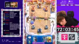 00:37:41Nach der Niederlage gewinnt der Streamer wieder mehrere Spiele in Folge. Es finden mehrere Mirror-Matches statt, bei denen der Streamer den Spielstil des Gegners analysiert. Er stellt fest, dass defensives Warten und das Sammeln von Elixier für sein Deck entscheidend sind, um im Vorteil zu bleiben. Die Siege werden souverän nach Hause getragen.