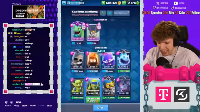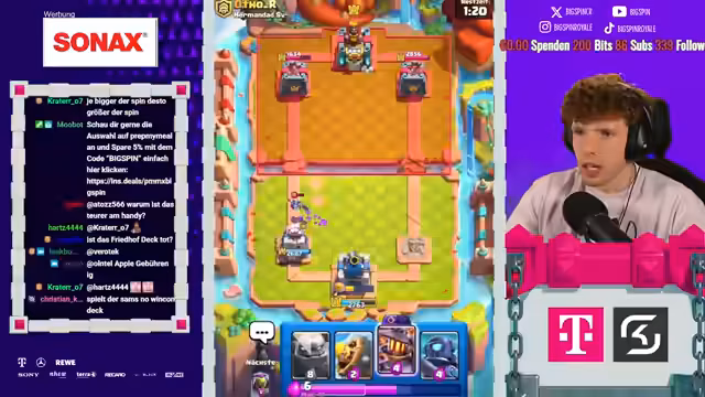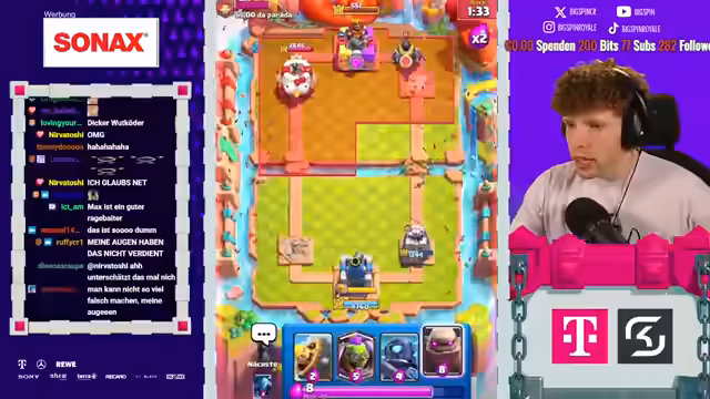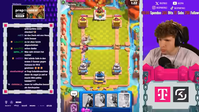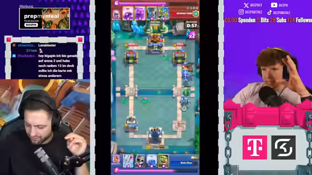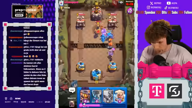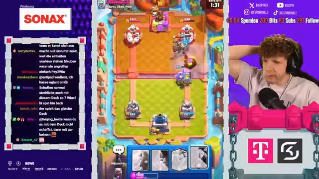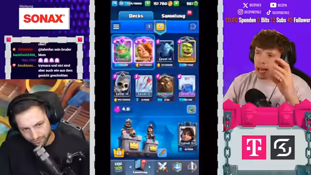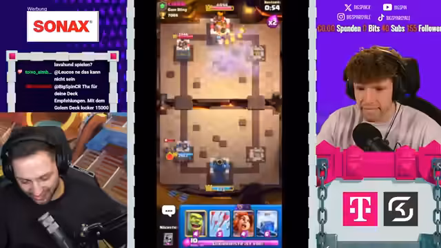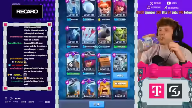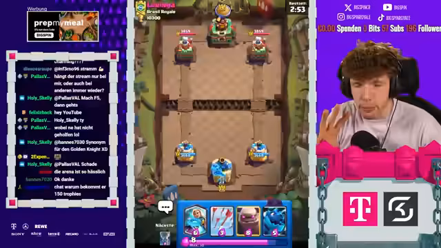00:00:00Der Stream beginnt mit der Ankündigung eines spontanen Clash Royale-Streams mit Nicistemmler. Es wird über seine geringe Erfahrung im Spiel gescherzt, wobei er sich selbst als eine 2 von 10 einschätzt. Es wird die Hintergrundgeschichte von Nicis Wiedereinstieg in Clash Royale durch die "Rentner-Tour" mit Max und Paul erläutert, die ihn mit ihrer Begeisterung angesteckt haben. Max hat ihn mit 300 Euro unterstützt. Es wird die Nutzung von Air-Server für das Streaming vom iPad diskutiert, wobei die anfängliche Skepsis von Max gegenüber dieser Technologie und die spätere Erkenntnis ihres Nutzens hervorgehoben werden. Technische Schwierigkeiten mit der Bildschirmübertragung werden thematisiert, was dazu führt, dass Nitro erworben wird, um die Streaming-Qualität auf 1440p zu erhöhen. Nach anfänglichen Problemen wird die Bildschirmübertragung erfolgreich eingerichtet, und Nicistemmler präsentiert sein von Max zusammengestelltes Lava-Hund-Deck, das gemischte Reaktionen hervorruft. Strategien zur Verbesserung des Decks werden besprochen, einschließlich des Austauschs des Evo-Ofens gegen die Geisterkaiserin und der Hinzufügung von Pfeilen oder Rankenzauber für mehr Flexibilität. Die Valkyrie Evo wird als potenziell wertvolle Ergänzung in Betracht gezogen, und der Erwerb dieser Karte durch Pay-to-Win wird demonstriert.