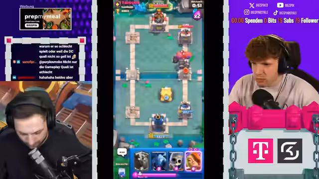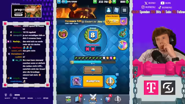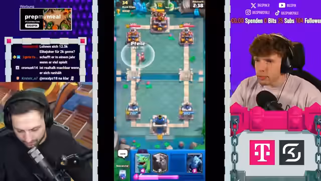 02:27:47Der Streamer interagiert stark mit der Community, teilt Anekdoten und beantwortet Fragen. So wird humorvoll von Max berichtet, der nach einer Coaching-Sitzung im Chat mit dem Spiel hadert. Auch die Kosten von Clash Royale werden thematisiert. Es wird diskutiert, ob 15 Euro für den Kauf von Karten-Leveln im Vergleich zu anderen Streamern, die mehrere hundert Euro investieren, ein vernünftiger Schritt ist. Dies unterstreicht den Fokus des Streamers, Content zu schaffen und das Spiel mit moderaten finanziellen Aufwand zu spielen.