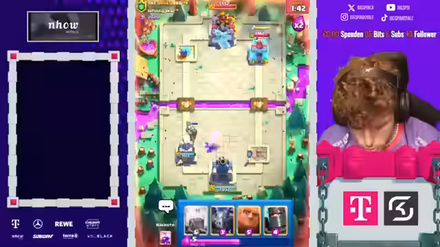 02:11:51Der Stream beginnt mit dem Versuch, in einem Clash Royale-Raid ein Tor zu erzielen. Die Kommunikation zwischen den Teammitgliedern ist jedoch holprig, es kommt zu Missverständnissen und einem frühen Torverlust. Nach einer kurzen Unterbrechung wird das Gameplay fortgesetzt, wobei ein überraschender Comeback-Versuch unternommen wird, der jedoch scheitert. Die Erfahrung wird als frustrierend beschrieben, da die Gegner als überlegen wahrgenommen wurden und das Team keine wirkliche Chance hatte.