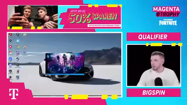 00:00:00Der Stream startet mit Musik und einer Ankündigung des heutigen Programms. Es geht um einen Fortnite-Qualifier für die Magenta e-Trophy mit einem Preisgeld von 4.000 Euro. Der Streamer erklärt, dass jeder Community-Spieler mitmachen kann und die beiden Gewinner in sein Team für das Finale am 14. November kommen. Gleichzeitig wird ein Duell gegen Flobby im globalen Turnier um 20 Uhr angekündigt.