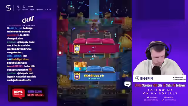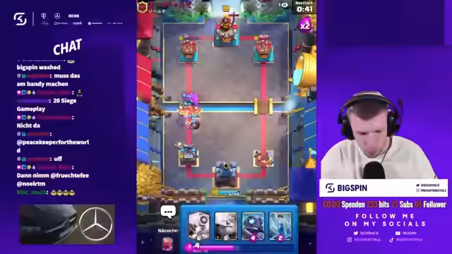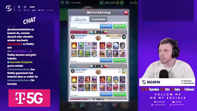 02:19:45Während des Duells kritisiert der Streamer die von Flobby getroffene Kartenwahl und bezeichnet sie als "Müll". Er behauptet, Flobby sei nur ein "Ego-Zocker" und betont, dass er selbst ein besseres Deck hätte. Gleichzeitig ist er sich unsicher über die von Flobby verwendeten Karten wie den "Königsritter" und bittet den Chat um Aufklärung. Trotz der Kritik bleibt das Spiel ein Kopf-an-Kopf-Rennen, bei dem beide Spieler um jeden Sieg kämpfen.