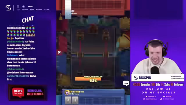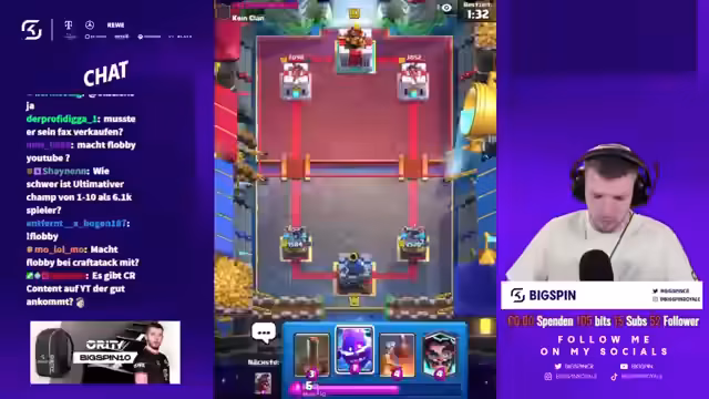 02:01:04Das Clash Royale Duell gegen Flobby geht weiter, und der Streamer zeigt mit seinem Kobold-Deck starkes Spiel. Er nutzt Karten wie den Prinzen und den Koboldianischen Bohrer effektiv, um dem Gegner Druck zu machen. Trotz eines durchwachsenen Starts, bei dem sein Feuerball wirkungslos bleibt, findet er ins Spiel und kann eine Runde für sich entscheiden. Das Duell bleibt spannend, da die Kartenwahl und die Taktik beider Spieler im Mittelpunkt stehen.