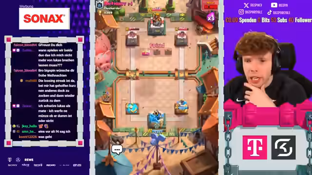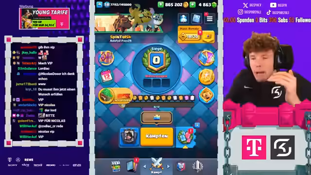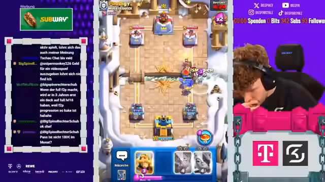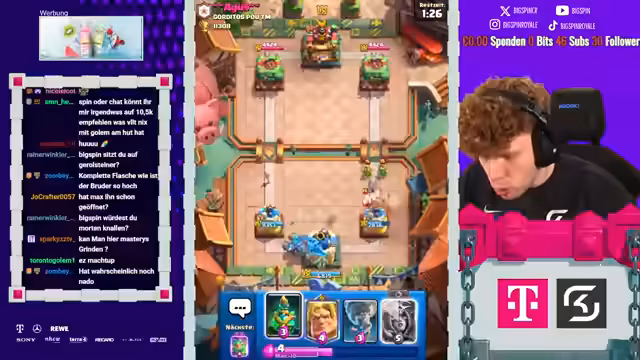 00:00:03Der Streamer begrüßt die Zuschauer und kündigt das heutige Hauptziel an: den Pass Royale auf einem F2P-Account zu öffnen, nachdem zuvor 11.500 Trophäen erreicht wurden. Dies ermöglicht den Zugang zu besseren Lucky Drops in der neuen Arena. Er betont die Wichtigkeit des Tages und erwähnt einen gescheiterten Versuch in der Vergangenheit.