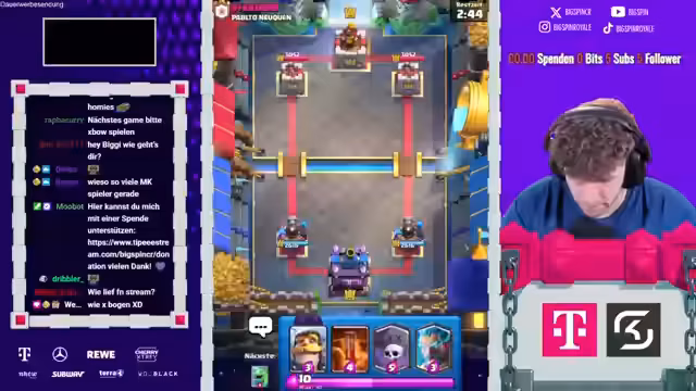 00:06:52Es wird ein Zuschauer-Raid begrüßt und sich über das Team gefreut. Der Streamer spricht über ein Clash Royale Quiz, das am Freitag stattfinden wird, vorbereitet von Kalifornien mit Unterstützung von Ungelaggt. Er äußert Respekt vor Ungelaggt's Wissen über das Spiel und erwartet ein anspruchsvolles Quiz. Es wird spekuliert, dass sehr detaillierte Fragen gestellt werden könnten. Der Streamer gewinnt ein Spiel und nimmt eine Herausforderung an, bei der er die Sounds der Karten im nächsten Spiel nachahmen soll, was er jedoch als schwierig erachtet. Er betont, heute ein seriöser Clasher sein zu wollen. Der Streamer nimmt Glückwünsche für Subscriptions entgegen und bedankt sich für die Unterstützung.