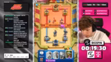 02:42:53Nach Ende des Qualifiers wechselt der Stream zum angekündigten Chaos-Modus. Eine neue Spielrunde startet, bei der der Streamer nach jeder Runde eine zufällige Karte vom Gegner übernehmen muss, ohne Augments selbst zu wählen. Das erste Spiel verläuft äußerst spannend, da ein Golem-Deck gespielt wird. Das Highlight des Spiels ist ein "Reflection Golem", der eine gegnerische Rakete reflektiert und das Spiel dreht, was als "Highlight" und "insane" beschrieben wird.