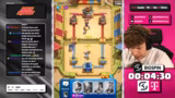 03:05:09Das Spiel gegen einen Gegner namens Pedro verläuft äußerst knapp. Pedro setzt einen unsichtbaren Mortar ein, was für den Streamer eine große Herausforderung darstellt. Trotz guter Anfangszüge und der Integration eines "Barbarenwerfers" in sein Deck sieht es zunächst so aus, als würde der Streamer verlieren. In einem dramatischen Finale gelingt es ihm jedoch, durch geschickte Verteidigung und eine final Attacke das Spiel doch noch zu drehen und für sich zu entscheiden.