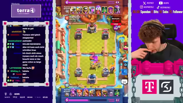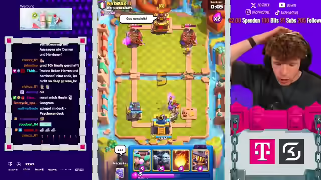 02:19:29Es wird der Spielverlauf analysiert, inklusive des Einsatzes von Valkyrie und dem Zyklieren von Barbaren, um Vorteile zu erlangen. Es wird die Frustration über scheinbar unverdiente Niederlagen gegen vermeintlich schwächere Gegner thematisiert, während gleichzeitig gegen stärkere Spieler verloren wird. Es wird die Bedeutung von Graveyard-Valkyrie-Kombinationen betont und die Notwendigkeit, auf den Feuerball des Gegners zu achten. Es wird die Frage aufgeworfen, ob die Uhrzeit einen Einfluss auf die Stärke der Gegner hat und ob es eine europäische Dominanz im Spiel gibt. Es wird die Schwierigkeit, bestimmte Gegnertypen zu finden, mit dem Finden eines Shiny Pokémon verglichen. Es wird die Bedeutung des richtigen Hütte-Placements hervorgehoben, um zu verhindern, dass Einheiten vorbeihüpfen. Es wird die Notwendigkeit, aus Fehlern zu lernen und sich an verschiedene Spielsituationen anzupassen.