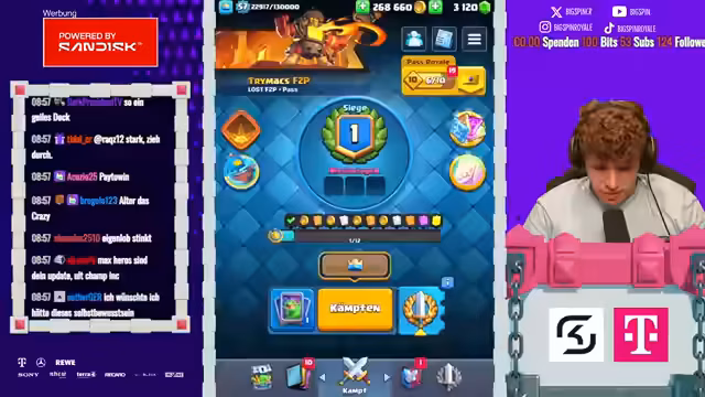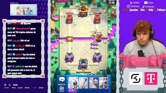 00:59:59Der Streamer äußert seine große Frustration über das Ranked-System von Clash Royale. Er berichtet davon, dass er auf Platz 3,8 Millionen startet, obwohl er Top 10.000 erreichen wollte, und dabei gegen Spieler mit über 2.000 Trophäen antritt. Er kritisiert das Matchmaking, das Free-to-Spielern den Zugang zum Ranked-Modus erschwert, da man erst eine bestimmte Liga erreichen muss. Der Streamer sees this system as inherently flawed and demotivating, especially for players on their first day of a new season.