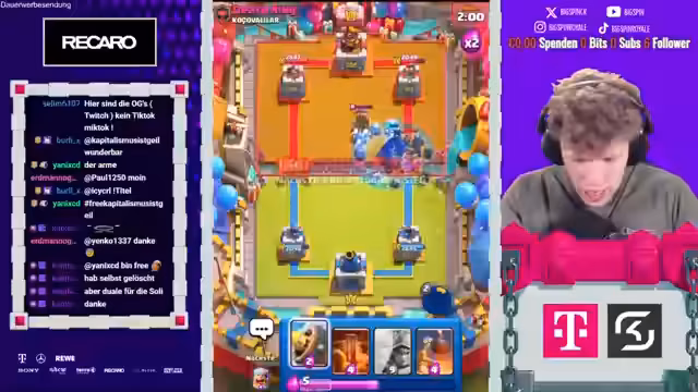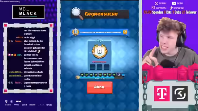 00:07:54Der Streamer setzt die Challenge fort und kommentiert dabei fortlaufend seine Deckauswahl und Spielstrategie. Er äußert sich kritisch über einige seiner Karten und betont den hohen Elixier-Verbrauch der rechten Karten. Trotzdem versucht er, das Beste aus seinem Deck zu machen und analysiert die Spielzüge seines Gegners. Er interagiert auch mit dem Chat, indem er Kommentare aufgreift und darauf reagiert. Ein Kommentar im TikTok-Chat bezeichnet ihn als unsympathischen Streamer, worauf er überrascht und humorvoll reagiert. Er betont, dass er lediglich Clash Royale spielt und sich nicht erklären kann, warum er als unsympathisch wahrgenommen wird. Er deaktiviert den TikTok-Chat kurz darauf, da er sich von den Kommentaren gestört fühlt. Trotz der Herausforderungen und negativen Kommentare bleibt der Streamer engagiert und versucht weiterhin, die Challenge erfolgreich abzuschließen. Er analysiert seine Spielzüge und die seines Gegners und versucht, die bestmögliche Strategie zu entwickeln, um das Spiel zu gewinnen. Er kommentiert auch humorvoll die Aktionen seines Gegners und seine eigenen Fehler.