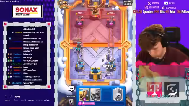 00:02:25Der Streamer konfrontiert sich in mehreren Runden mit sehr aggressiven und ungeduldigen Gegnern, die ihm schwere Matchups aufzwingen. Er beschreibt die Decks seiner Gegner als „Aids Decks“ und „Fantasie“ und beklagt, dass er unter anderem gegen Egolem, Triple Spell, Royal Giant und Bats spielen muss. Diese Decks haben seiner Meinung nach einen signifikanten Vorteil und machen ihm das Leben schwer, da er oft keine direkten Antworten darauf hat. Das Gefühl der Frustration über die unfaire Meta ist ein wiederkehrendes Thema.