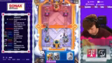 04:29:18Die aktuelle Herausforderung ist ein Gegner mit einem X-Bogen-Deck. Der Start des Games ist für den Streamer nicht optimal, da er den Gegner durch einen zu direkten Ritter-Einsatz unter Druck setzt, was den Gegner dazu verleitet, eine Bogenspanner-Karte zu spielen. Die Partie entwickelt sich zu einer engen Auseinandersetzung, in der der Streamer defensiv mit Rescues, Skellys und Barbell agiert, um den Angriff des Gegners zu überstehen und zu kontern.