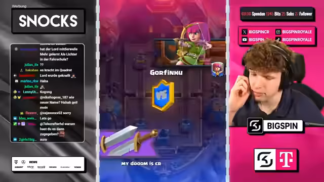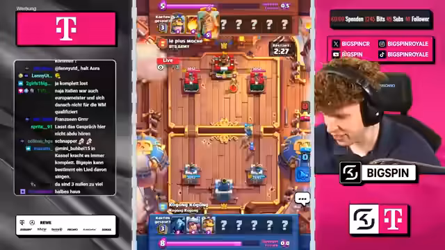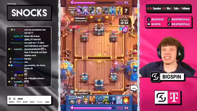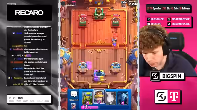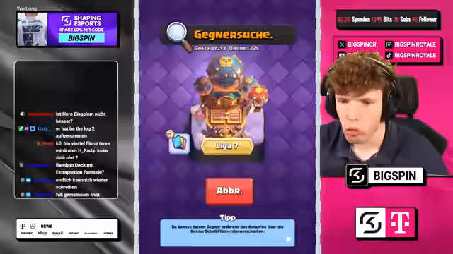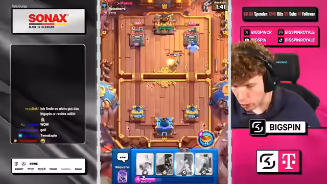 02:57:07Der Streamer beginnt eine kreative Brainstorming-Phase für neue Formate in Clash Royale. Er äußert den Wunsch, seinen Content aufzuwerten und sucht nach innovativen Ideen, die noch niemand umgesetzt hat. Es werden mehrere konkrete Konzepte diskutiert, darunter ein Triple-Draft-Format, bei dem nur bestimmte Kartentypen gewählt werden dürfen, oder ein Spiel mit Bingo-Karten, bei dem jeder Spieler versucht, so schnell wie möglich mit einer bestimmten Karte zu gewinnen. Darüber hinaus wird die Idee eines gemeinsamen Streams mit Dominik und anderen externen Partnern, wie Verotex, ins Gespräch gebracht, um frische Dynamik in die Content-Erstellung zu bringen.