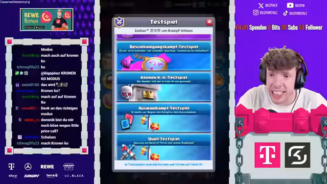 04:29:43Nach der Annahme der Wette gerät der Streamer in Schwierigkeiten, da er das vom Gegner genannte Deck nicht auf seinem Account findet. Er ist gezwungen, mehrfach den Account zu wechseln und das Deck unter Zeitdruck zu bauen. Dies führt zu Frustration undCOMMENT_1 im Chat, während der Gegner den Vorgang humorvoll kommentiert und den Streamer dazu auffordert, ruhig zu bleiben.