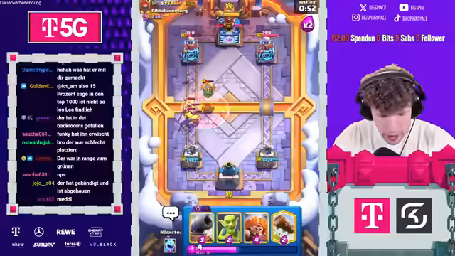 00:35:01In einer intensiven Spielphase setzt der Gegner auf eine aggressive Kanonenstrategie, was unerwartet und spannend ist. Trotz anfänglicher defensiver Züge gelingt es, mit einem Miner-Goblin-Angriff eine Evo-Kanone zu platzieren. Der Gegner verzichtet überraschend auf einen wichtigen Spielzug, was dem Streamer ermöglicht, voranzukommen. Allerdings entsteht ein Problem, da beide Türme des Streamers unter Beschuss geraten. Trotzdem besteht die Chance auf einen Sieg, wenn der Turm standhält. Es folgen frustrierende Momente durch minimale Interaktionen im Spiel, die den Streamer stark beeinträchtigen. Die Spiele sind von unglücklichen Umständen geprägt, was zu Frustration und dem Gefühl führt, dass das Spiel manipuliert ist. Der Streamer betont den erlebten Schmerz und die empfundene Ungerechtigkeit, während er stark schwitzt. Trotzdem wird versucht, den Fokus nicht zu verlieren und weiterzuspielen.