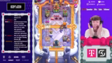 00:46:00Der Streamer trifft erneut auf einen Goblin-Giant-Spieler, was ungefähr das siebte Mal ist. Er setzt eine Kanone ein und erwartet einen Sparky, aber es kommen Runenriesen. Der Little Prince wird eingesetzt, und der Streamer hofft, dass der Gegner keine Pfeile oder einen Lightning hat, da Lightning verheerend wäre. Der Little Prince macht einen guten Job, aber der Goblin Giant fokussiert nicht die Kanone, was zu einer ungünstigen Situation führt. Der Streamer äußert den Wunsch, gegen normale Decks zu spielen. Das Deck des Streamers wird als gut, aber fehleranfällig beschrieben, da es ständig gegen Decks antritt, die Fehler sofort bestrafen. Der Streamer trifft auf einen Laberhund-Spieler und hofft, dass der Gegner keinen Lightning hat. Er setzt alles ein, und der Gegner verliert einen halben Turm, was ihn aber nicht kümmert, da er ein Laberhund-Spieler ist. Der Streamer hat nur eine Karte gegen Luft, und wenn der Gegner diese töten kann, ist das Spiel vorbei. Der Gegner greift auf der anderen Seite an, was aufgrund der fehlenden Anti-Air-Karten problematisch ist. Ein Eisgeist verhindert jedoch Schaden.