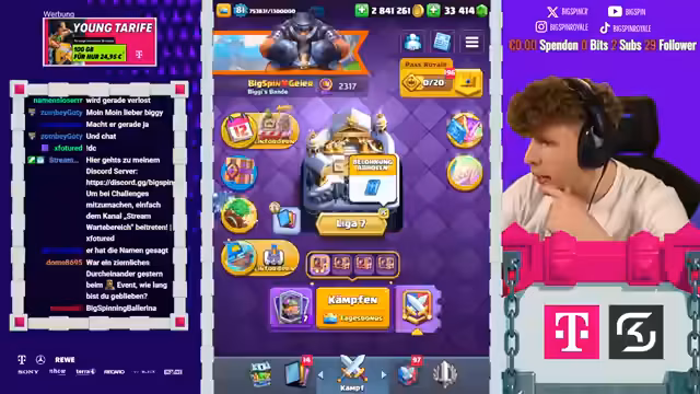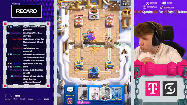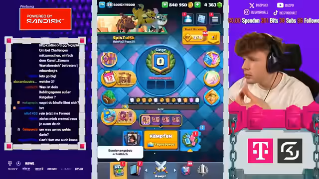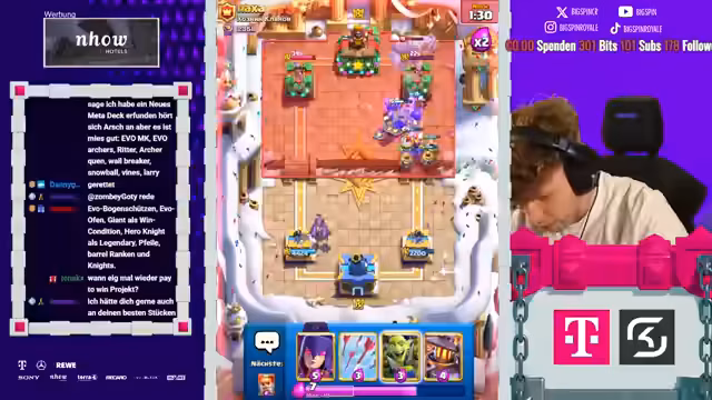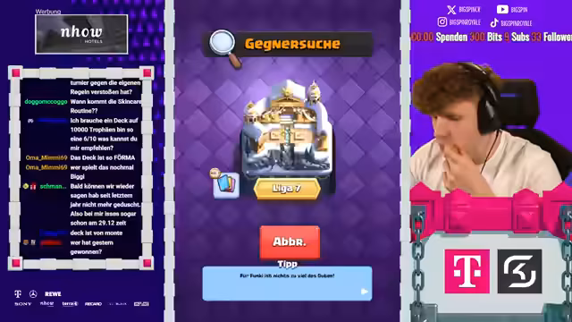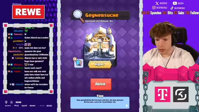 00:00:00Der Streamer begrüßt das Publikum und startet den Livestream. Er erwähnt Schwierigkeiten mit TikTok-Bewerbungen für Livestreams aufgrund früherer Bans. Nach erfolgreicher Aktualisierung der Counter und Bestätigung der Streaming-Software kündigt er das Hauptthema an: Das Testen eines neuen Mega-Ritter-Decks, das aktuell Platz 5 der Weltrangliste belegt. Parallel bereitet er Instagram-Ankündigungen vor und bestätigt den Live-Zugriff auf die Plattformen.