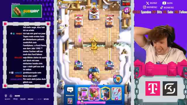 03:43:26Der Streamer plant, auf ein spezielles Clash-Royale-Video zu reagieren, das ihn interessiert. Er äußert den Wunsch, öfter auf andere Videos zu reagieren, bemerkt aber, dass seine privaten Interessen (z. B. Autos) eventuell nicht zu allen Zuschauern passen. Dies führt zu einer kurzen Unterhaltung über seine Vorlieben, die anschließend schnell wieder zum Thema Gaming zurückkehrt.