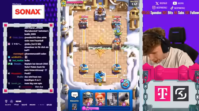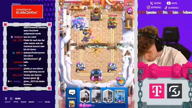 04:12:30In der Schlussphase des Streams spielt der Streamer ein neues Spiel, in dem der Gegner aggressiv mit Fledermäusen und Abilities agiert. Trotz guter Defensive und Nutzung von Hexenmutter und Rambock verliert er aufgrund von Level-Unterschieden. Er kritisiert erneut die Dominanz von Giant-Sparky-Decks in der aktuellen Meta und bezeichnet deren Spieler als wenig strategisch kompetent, während er technische Schwierigkeiten anspricht.