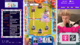 00:28:51Das sechste Spiel wird gegen ein sehr stückiges Deck aus Graveyard, E-Valkyrie, Hütte und Hexe ausgetragen. Der Streamer fühlt sich im Nachteil und überlegt, wie er das Game gewinnen kann. Obwohl er die Chance hat, mit der Pumpe den Gegner zu stören und durch Vines Schaden zuzufügen, wird der Comeback-Versuch durch eine starke gegnerische Verteidigung mit der Hexe und der Hütte vereitelt. Das Spiel endet für ihn frustrierend.