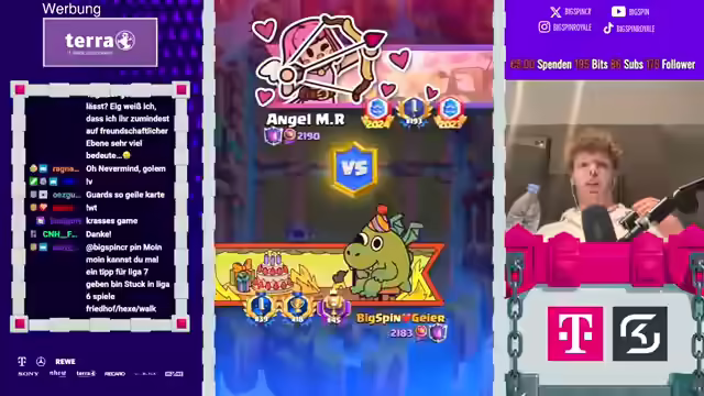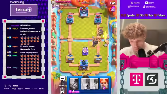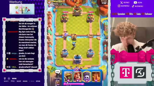 01:34:04Es erfolgt ein Wechsel zu einem weniger anspruchsvollen Deck, während der Streamer über seine Augenringe spricht, die er auf Schlafmangel und Träume von Clash Royale zurückführt. Trotzdem konzentriert er sich auf das Spiel, kontert gegnerische Angriffe mit Bubble und Hexe, wobei er feststellt, dass die Hexe in diesem Matchup besser ist als der Ofen. Nach einem weiteren gewonnenen Spiel fordert er Matthias zu einem Deckwechsel heraus und bedankt sich für die Unterstützung durch Subs und Spenden. Er äußert sich verwundert über die gegnerische Luftpost und dessen Deck-Zusammenstellung, während er versucht, die gegnerischen Strategien zu durchschauen und zu kontern. Trotzdem gewinnt er mehrere Spiele hintereinander und lobt die Community.